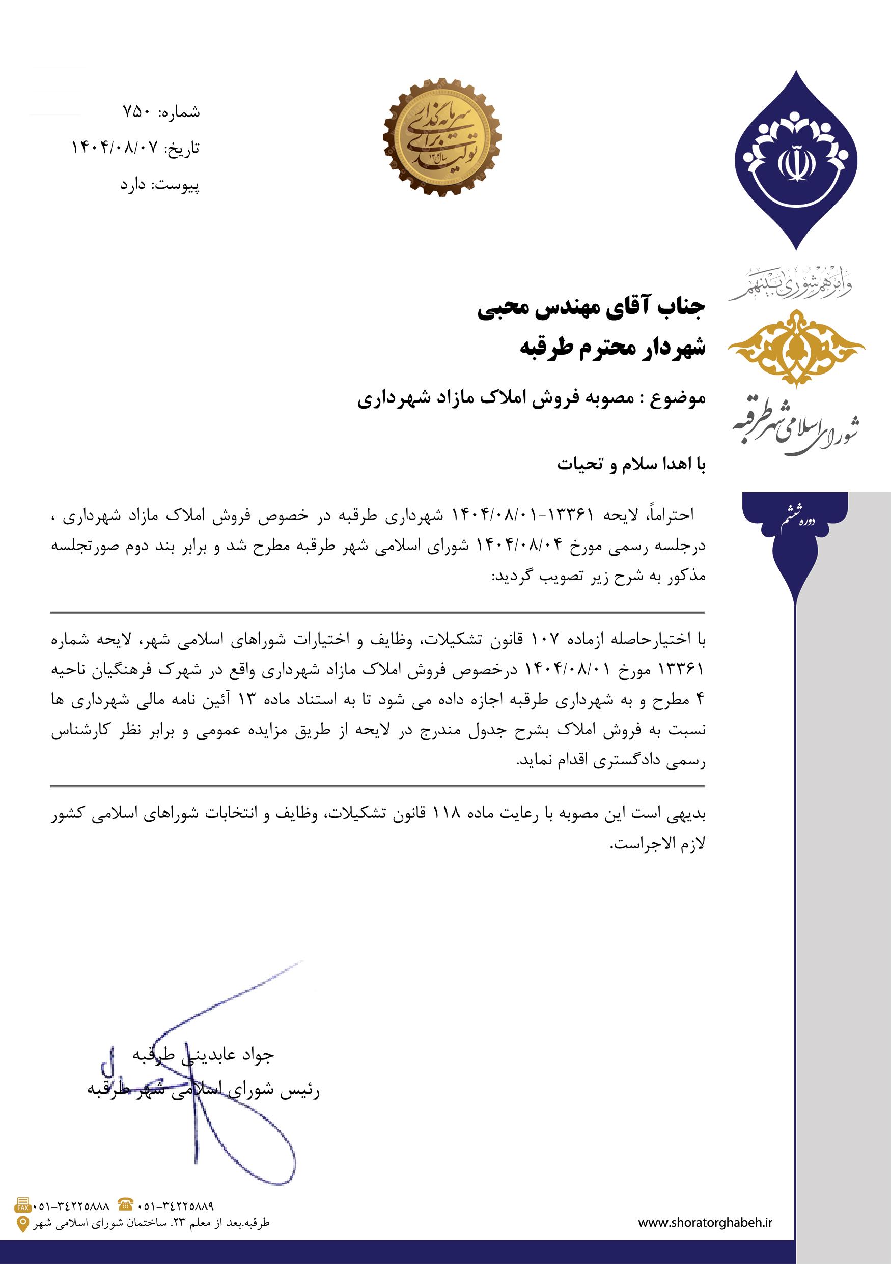 نویسنده : روابط عمومی شورای اسلامی شهر طرقبه
