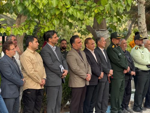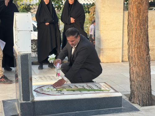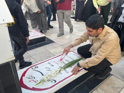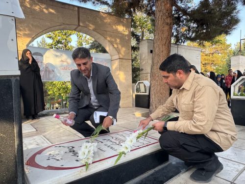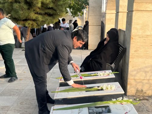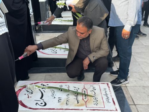 شرکتکنندگان نیز با قرائت فاتحه و نثار گل بر مزار مطهر شهدا، بار دیگر با آرمانهای امام خمینی(ره)، مقام معظم رهبری و شهیدان سرافراز انقلاب اسلامی تجدید پیمان نمودند.